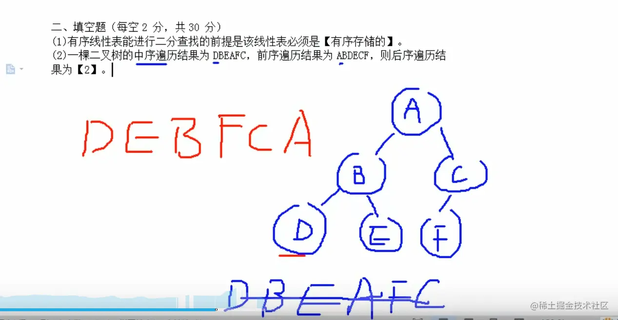 计算机二级往年真题(填空题) BBA__ 2021-10-19 117 阅读1分钟 1. 根据中序遍历和前序遍历的结果可以推出该线性表,从而很容易就得出后序遍历的结果 2. 因为3/2中3和2均是整数,系统自己会将3/2=1.5的结果保存为1 3.