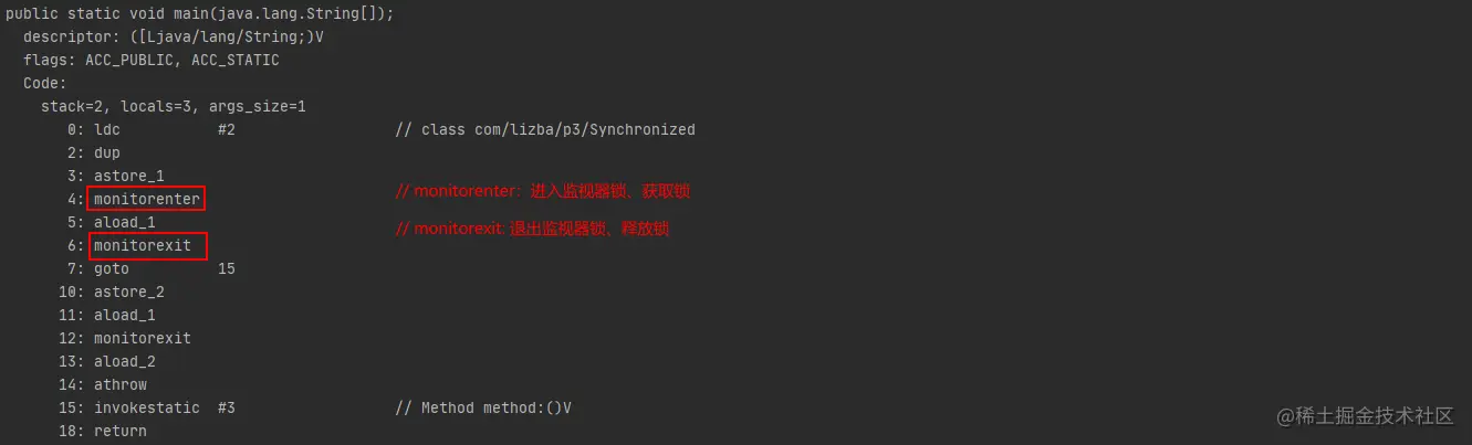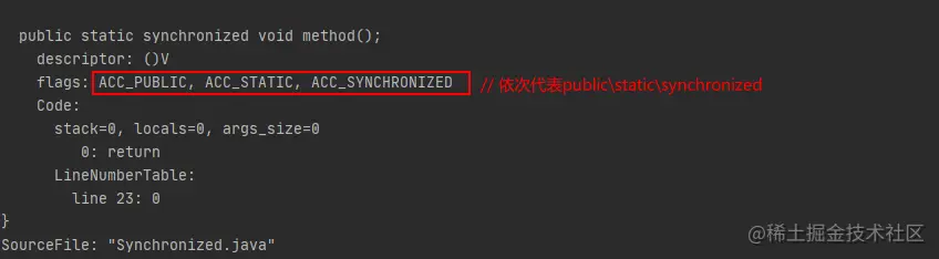 在Synchronized.class同级目录执行javap -v Synchronized.class