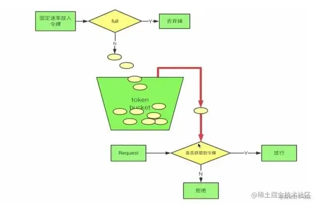 首先我们会有个桶,如果里面没有满那么就会以一定 固定的速率 会往里面放令牌,一个请求过来首先要从桶中获取令牌,如果没有获取到,那么这个请求就拒绝,如果获取到那么就放行。很简单吧,啊哈哈、