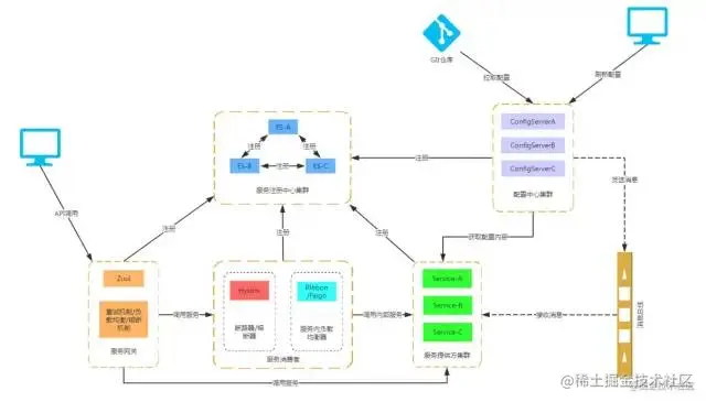 如果你能这个时候能看懂下面那张图,也就说明了你已经对 Spring Cloud 微服务有了一定的架构认识。