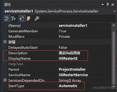 单击serviceInstall1(如上图),属性栏的SartType按需设置,我选择的"Automatic"