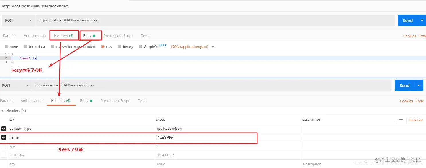 原因1:头部传入了接口不需要的参数,并且body也传入了参数,如图