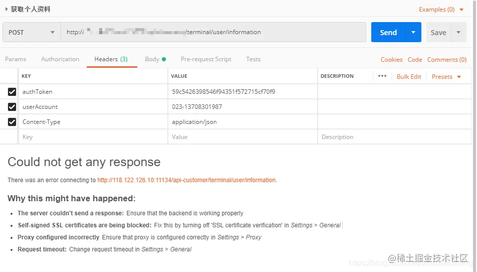有一个错误连接到118.xxx.xxx.10:11134/api-custome…