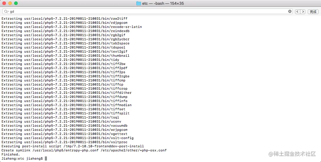 这个时候,你在终端中输入php -v 显示的还是老的版本,如果你想用新的版本的php。可以这样/usr/local/php5/bin/php -v,这样很麻烦,可以将这个新的PHP路径追加到$path中。