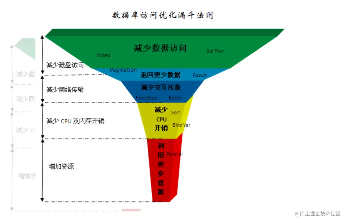 按照叶正盛早些年在《ORACLE DBA手记》上写的文章,数据访问优化满足以下漏斗法则: