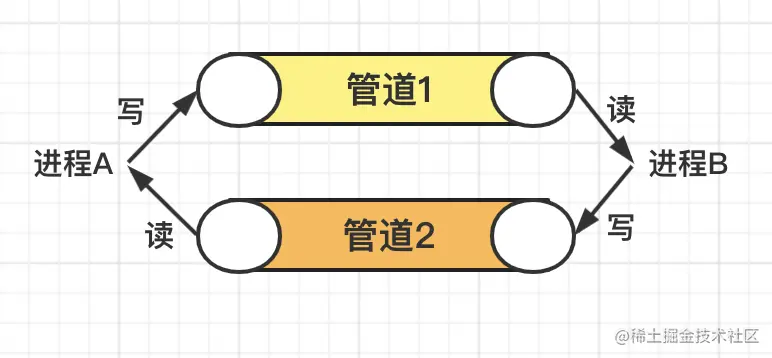 但我们发现管道只能单向传输数据,想要实现进程之间的双向传输则需要创建两个管道。