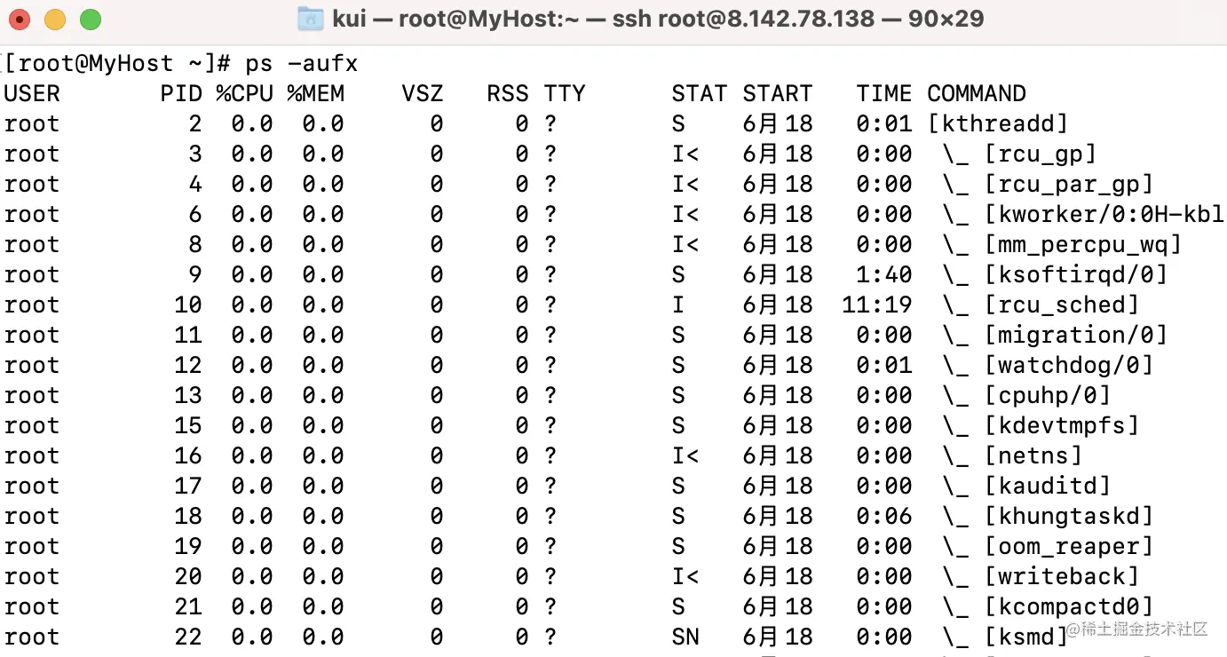 Linux中用「ps -aufx」可以查看当前进程。