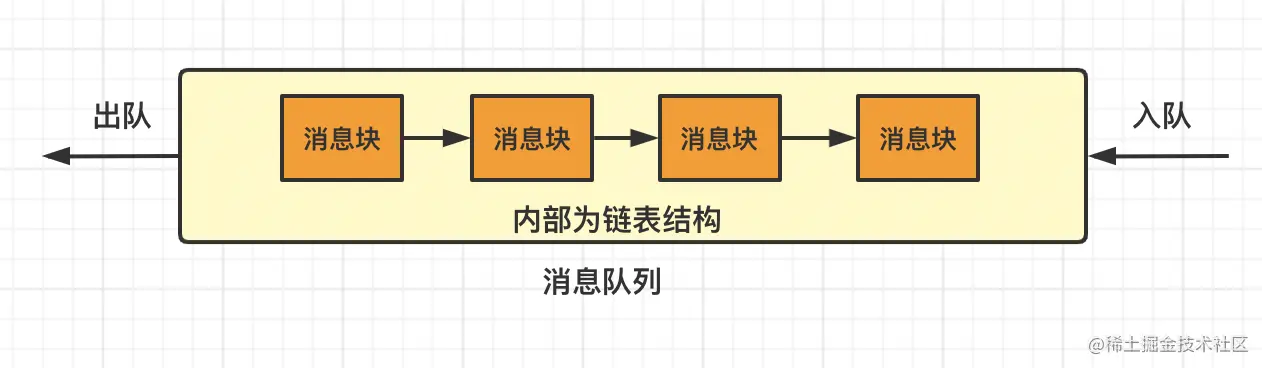 写消息就往队列中入队一个消息块,读消息就删除队列中队头的消息块。