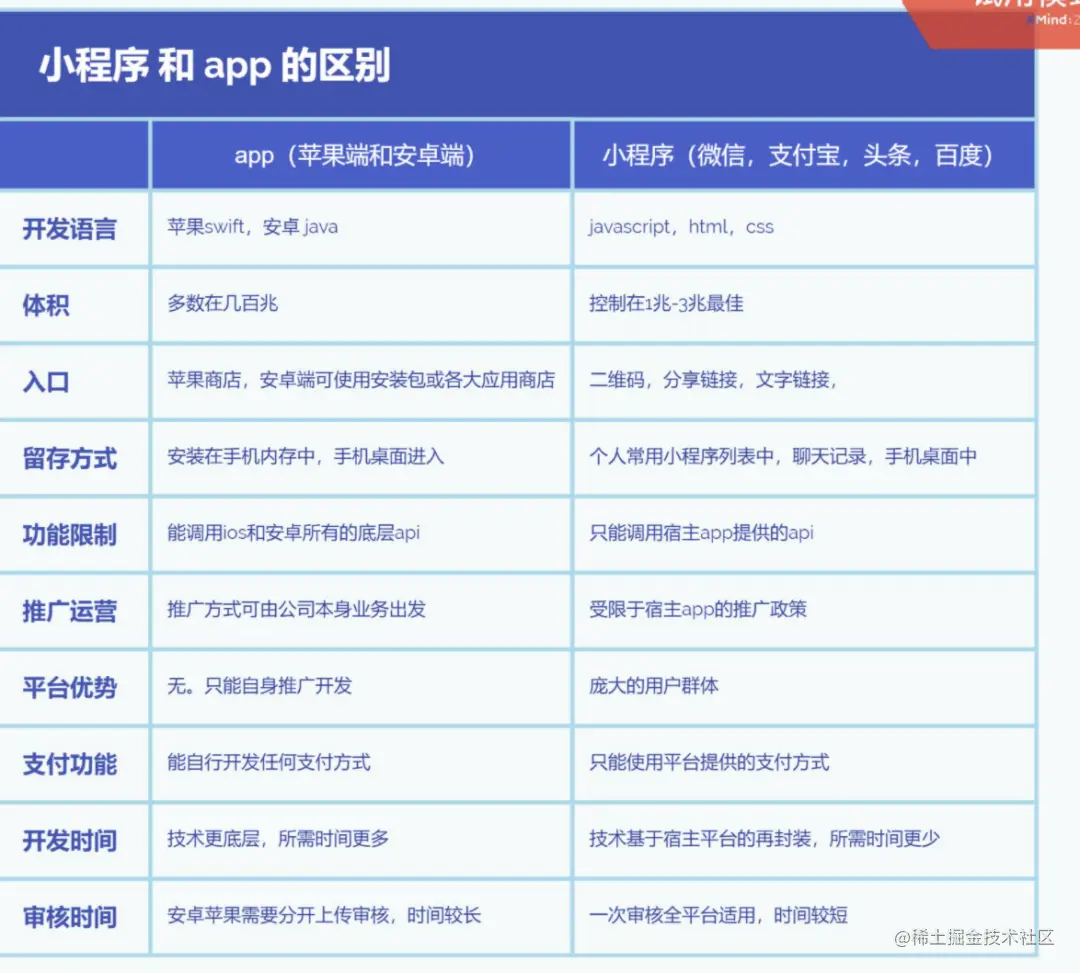 以上我收集了网上整理的app和小程序形态下优劣势对比。可以看到小程序和app的底层技术实现。