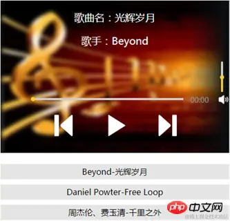 | 1234567 | <``p id``=``"playList"``>`` ``<``ul``>`` ``<``li id``=``"m0"``>Beyond-光辉岁月</``li``>`` ``<``li id``=``"m1"``>Daniel Powter-Free Loop</``li``>`` ``<``li id``=``"m2"``>周杰伦、费玉清-千里之外</``li``>`` ``</``ul``>``</``p``> |