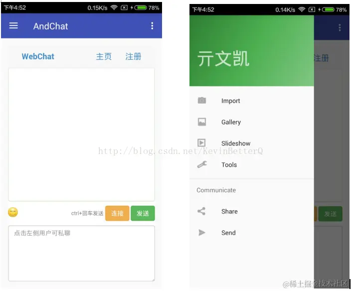 3、AndChat: Android客户端实现代码 (github.com/KevinBetter… )