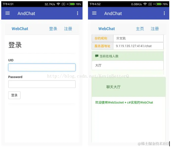 编写一个基于WebSocket的聊天程序,整个系统,实用了C#开发,.NET网站开发,Android开发,在开发实践中学习。