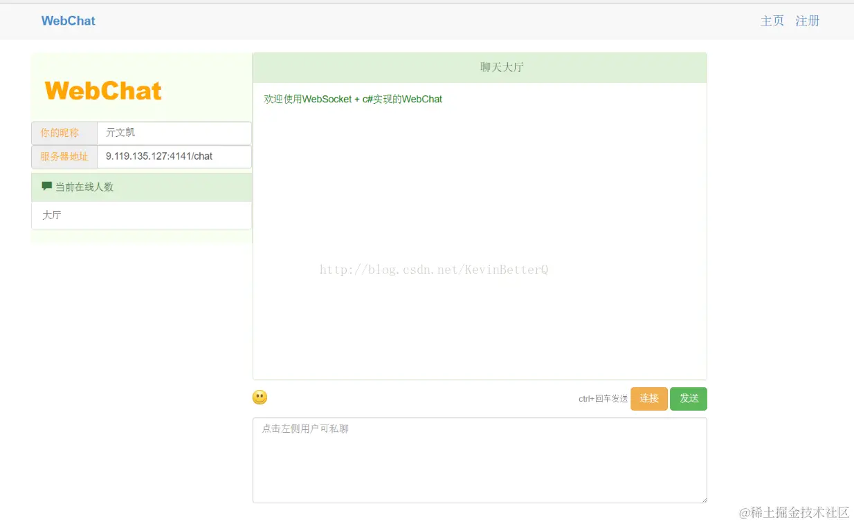 利用C#语言自己实现了一个WebSocket的服务器,对协议进行解析,并对聊天信息的发送进行管理。