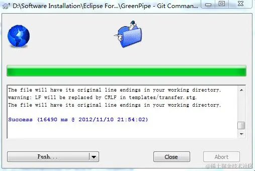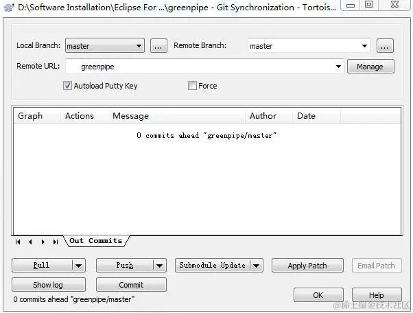 下图表示commit成功,下图左下角有Push操作,可以直接点击“Push”将这些已经commit的文件上传到GitLab的GreenPipe新建项目中。