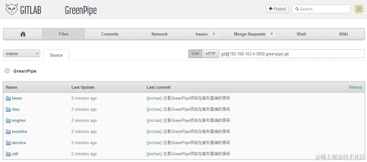 当这些上传完成之后,我们发现GitLab网页网上GreenPipe新建项目的页面已悄悄地发生了变化,截图如下:
