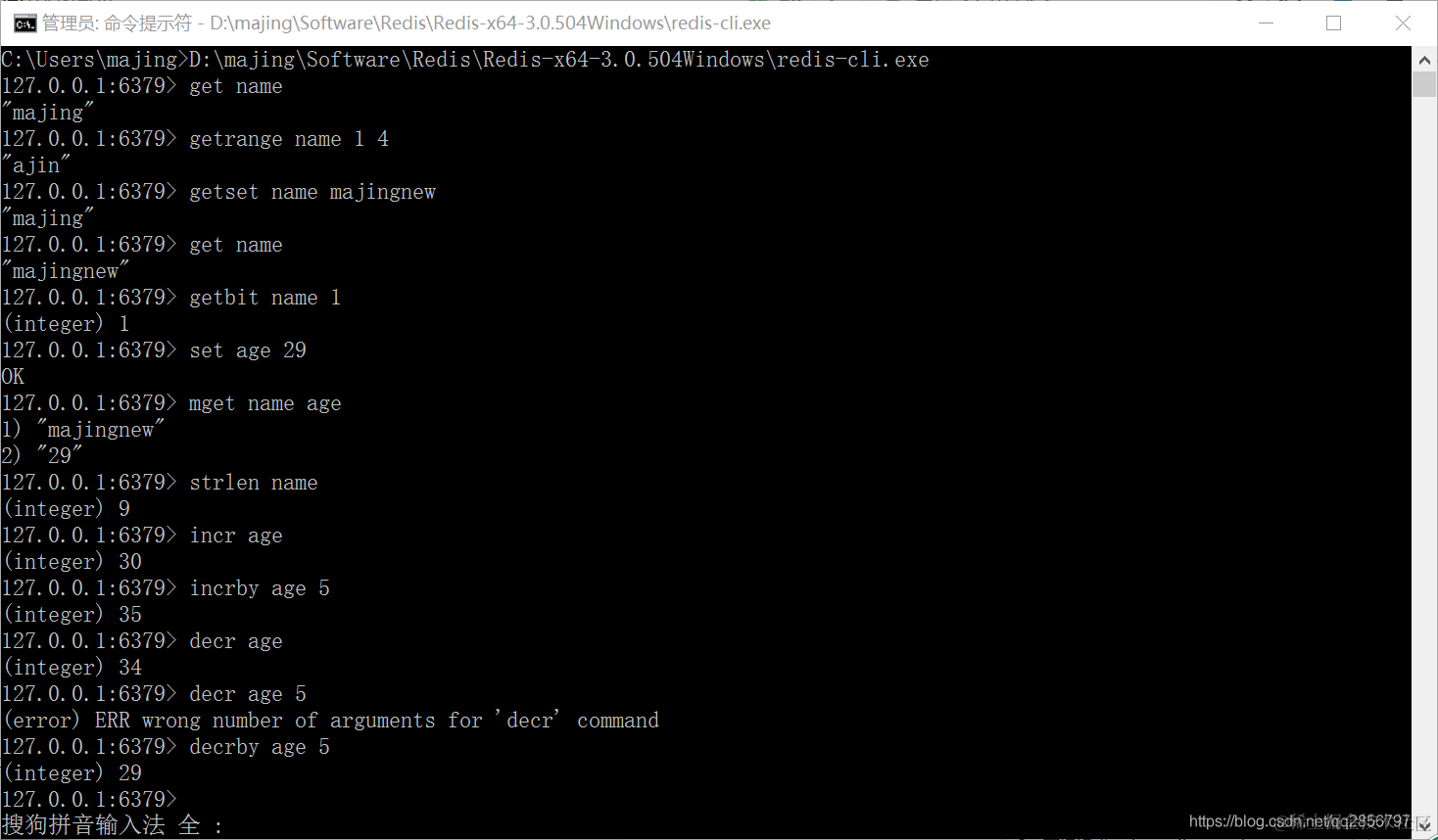 下面对上面列举的部分指令进行实例操作,截图如下:
