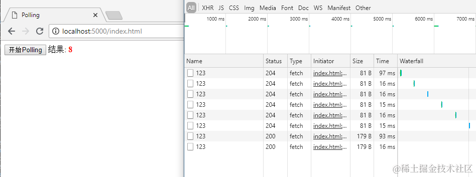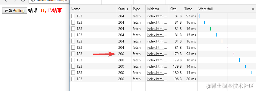 poll里面, 如果请求返回的结果是200, 那么就更新UI. 但是如果没有finished标志, 就继续发出请求.