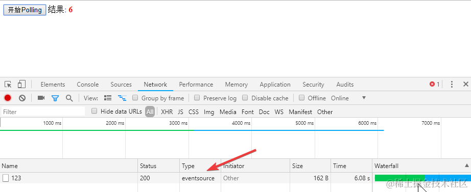 这个EventSource要比Polling和Long Polling好很多.