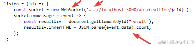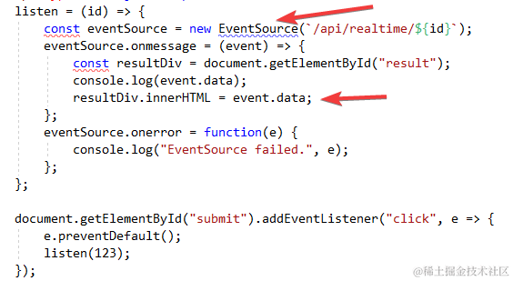然后eventhandler和SSE的差不多. 返回的json数据需要先parse, 然后再使用.