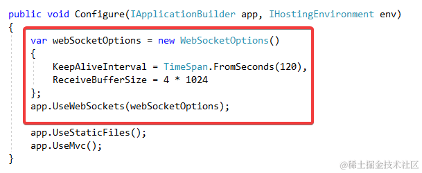 首先ASP.NET Core项目里已经内置了WebSocket, 但是需要配置和使用这个中间件, 在Startup: