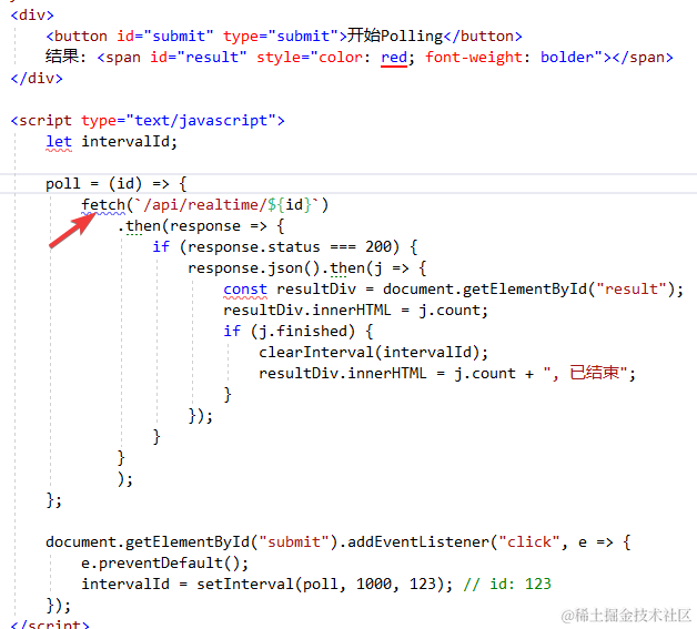 也是非常的简单, 点击按钮后定时发送请求, 如果有结果就显示最新count值; 如果有finished标志, 就显示最新值和已结束.