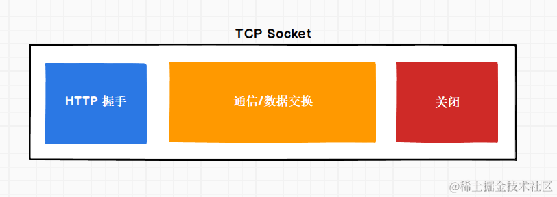 所有的一切都发生在TCP Socket里面, 首先一个常规的HTTP请求会要求服务器更新Socket并协商, 这个叫做HTTP握手. 然后消息就可以在Socket里来回传送, 直到这个Socket被主动关闭. 在主动关闭的时候, 关闭的原因也会被通信.