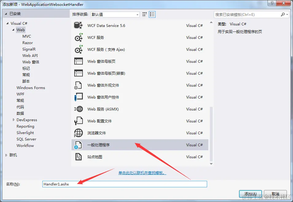 2.新建一个“一般处理程序”
