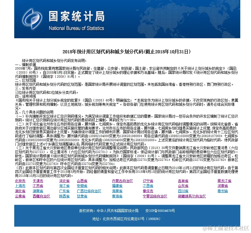 突然要用到地区数据,想到以前用python的Scrapy框架写过一个爬虫,于是打算直接去国家统计局把最新的地区数据抓取回来.本想只需要copy一下以前的代码,就可以得到新鲜出炉的数据,谁知打开以前的项目,脑子一片空白,一点印象都莫得.只恨当时没有做做笔记,写个博客啥的来加深一下影响.点子已经到这里来了,于是在.net core框架下再做了一点简单的爬取工作,并截取前面一部分,整理成文,方便以后回顾