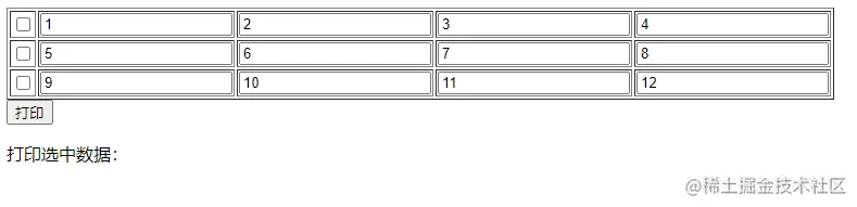打印选中数据: