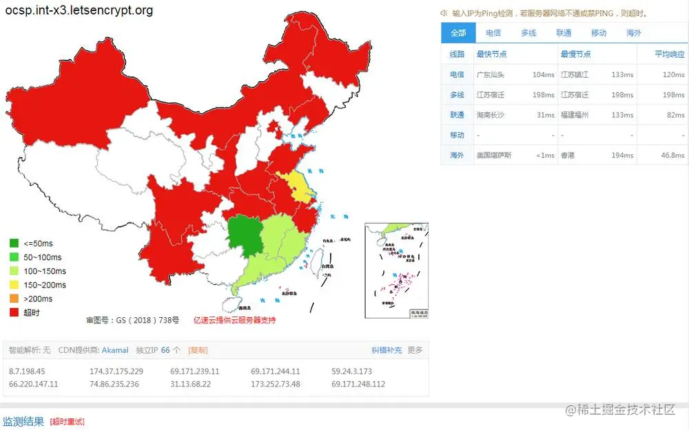 上述结果中的绿色部分也只是极个别情况,该地区的99%的运营商其实也是红色超时状态,白色是仍然在 pending 中,我懒得继续等了