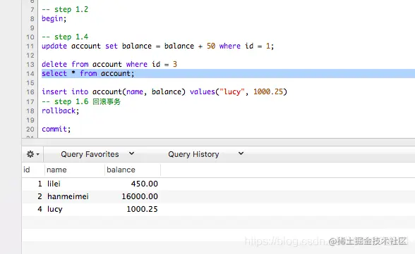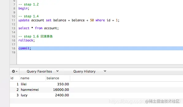 -- step 1.6 回滚事务