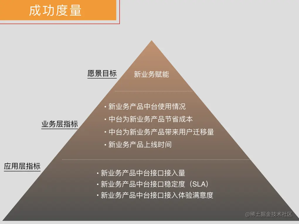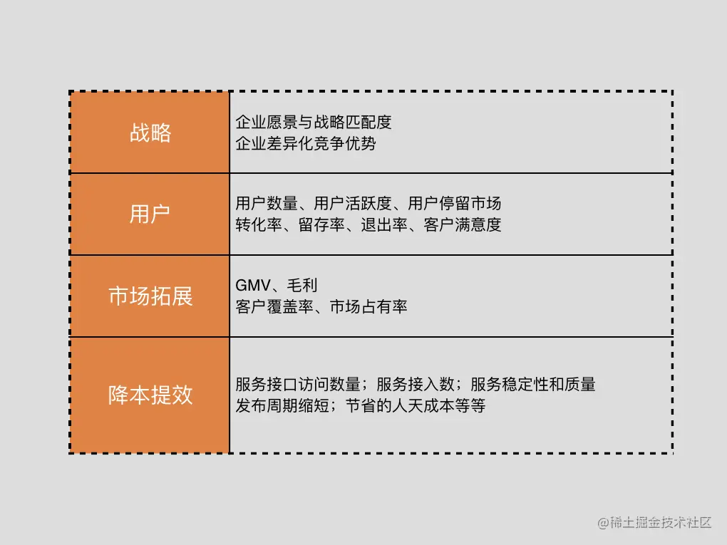 举个例子,如果我站公司管理层的视角:那我怎么判断中台建设的成果?如果回答是看对于新业务的赋能,那我怎么验证对于新业务的赋能效果?如果回答是看新业务的上线速度,那我怎么验证新业务的上线速度?如果回答是看新业务从立项到上线的时间,那我怎么验证……