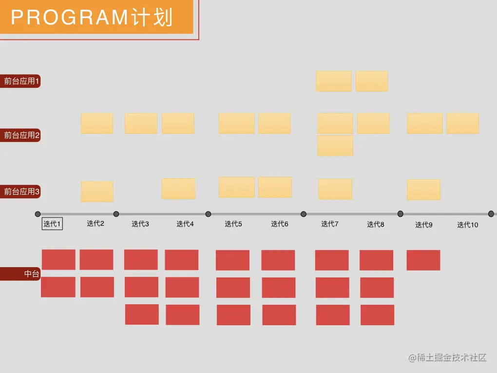 主要是我们把中台从整体规划到落地交付的过程划分了四个不同的阶段,包含了两次发散与收敛的过程。