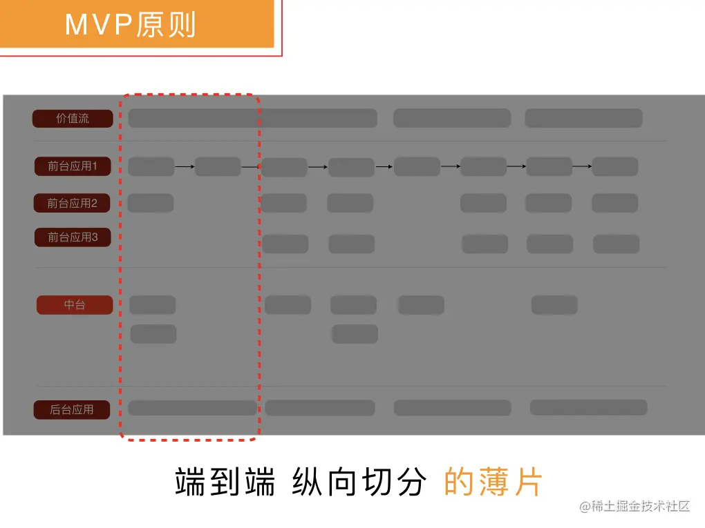 基于中台的建设愿景,我们就可以在横向端到端价值链和纵向的业务线上收敛到一个聚焦的区域。 .