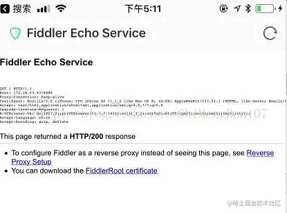 Step3、打开一个下载证书的页面,如下,点击最下方的“FiddlerRoot certificate”按钮,下载证书。