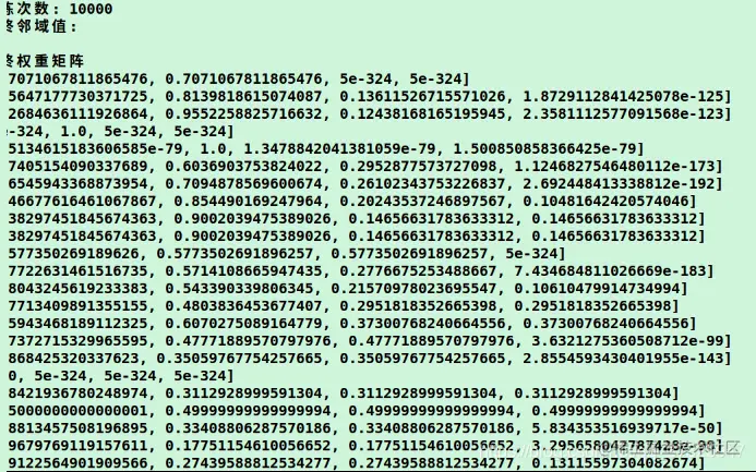 经过迭代学习10000次,得到的权重矩阵如下: