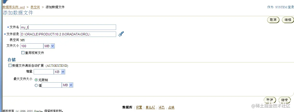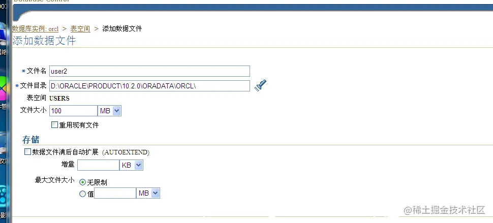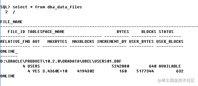 分别使用SQL命令和OEM图形化工具查看本地数据库物理文件,并使用OEM工具在现有的usrs表空间中添加user02.dbf数据文件