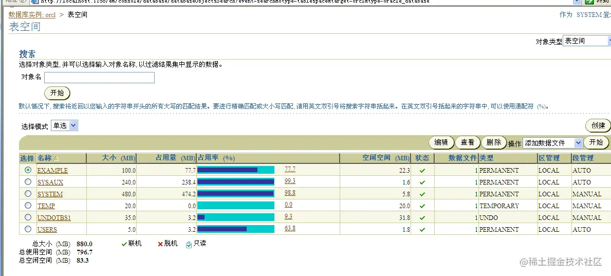 2.使用OEM图形化工具查看本地数据库的表空间,并尝试创建一个新的表空间及其数据文件。