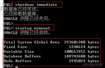 (3)STARTUP NOMOUNT|MOUNT|OPEN 观察以不同方式启动数据库时提示信息有何不同。