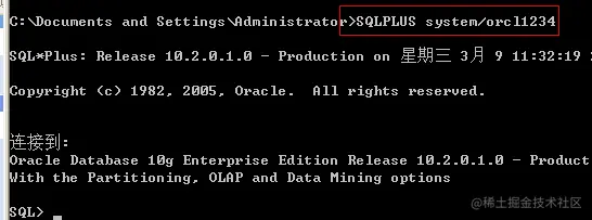 2.使用system用户登录OEM工具、程序组中的SQL*Plus图形窗口。