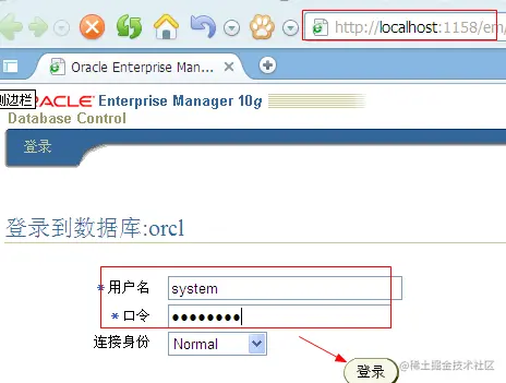 使用:http://localhost:1158/em 登录本机OEM工具,如下图所示: