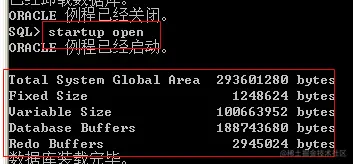 4、以sys用户的STSDBA特权登录数据库,尝试使用STARUP命令的不同方式启动数据库并使用SHUODOWN命令关闭数据库