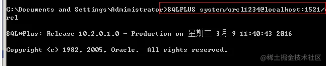 (3)SQLPLUS system/密码@主机名或主机IP地址:数据库端口号/数据库服务名。