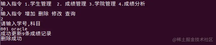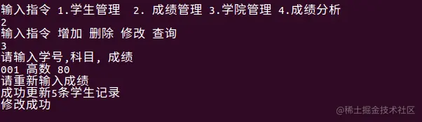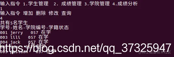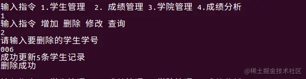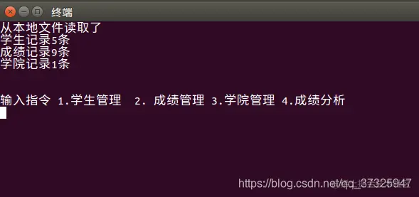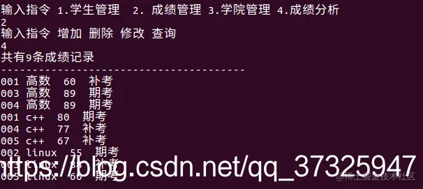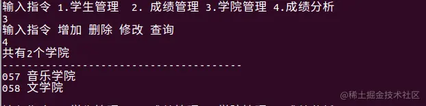 cout<<"\n输入指令 1.学生管理 2. 成绩管理 3.学院管理 4.成绩分析"<<endl;