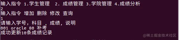 cout<<"成功更新"<<sco_num<<"条成绩记录"<<endl;