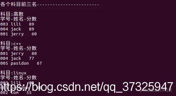cout<<"\n各个科目前三名------------------------"<<endl;
