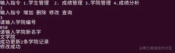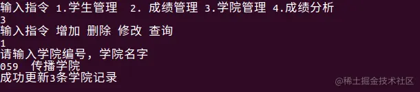 cout<<"成功更新"<<col_num<<"条学院记录"<<endl;