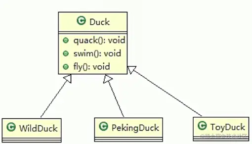 其它鸭子,都继承了Duck类,所以fly让所有子类都会飞了,这是不正确的