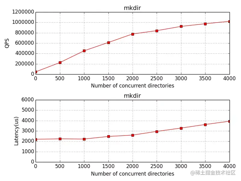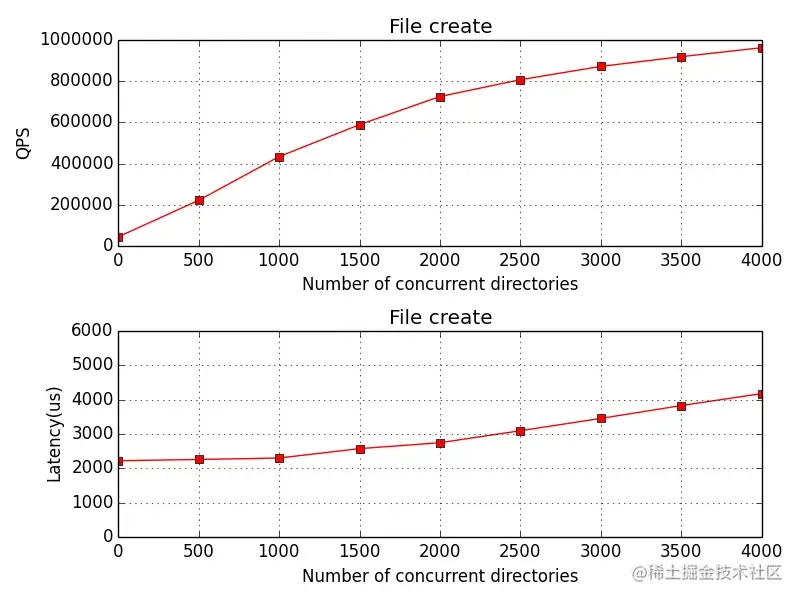 说明:以下测试 workload 均采用 Mdtest 作为元数据测试工具,其中 Meta Client 作为文件系统协议接入层对接标准的NFS协议,压测中的线程工作在相同 FS 不同路径上。