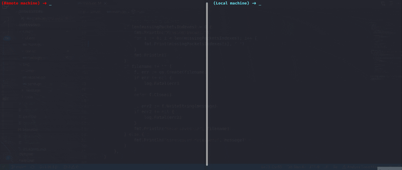 $ qssender send file -d 2 -l 127.0.0.1 -r 10.0.0.92 -s 50000 bible.txt
